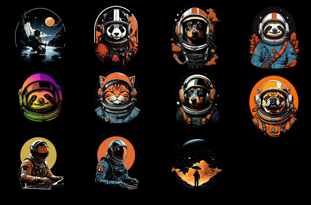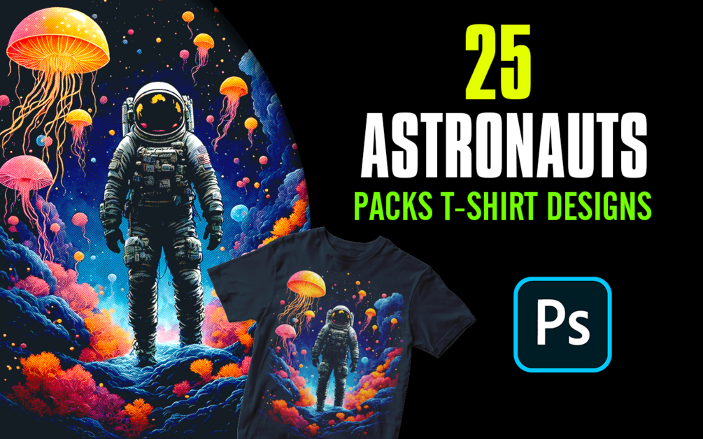 • 25 PNG and PSD Astronaut designs Files ready to print,