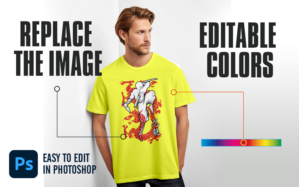 Easy to edit with Photoshop smart objects. Just drop your files in and go!